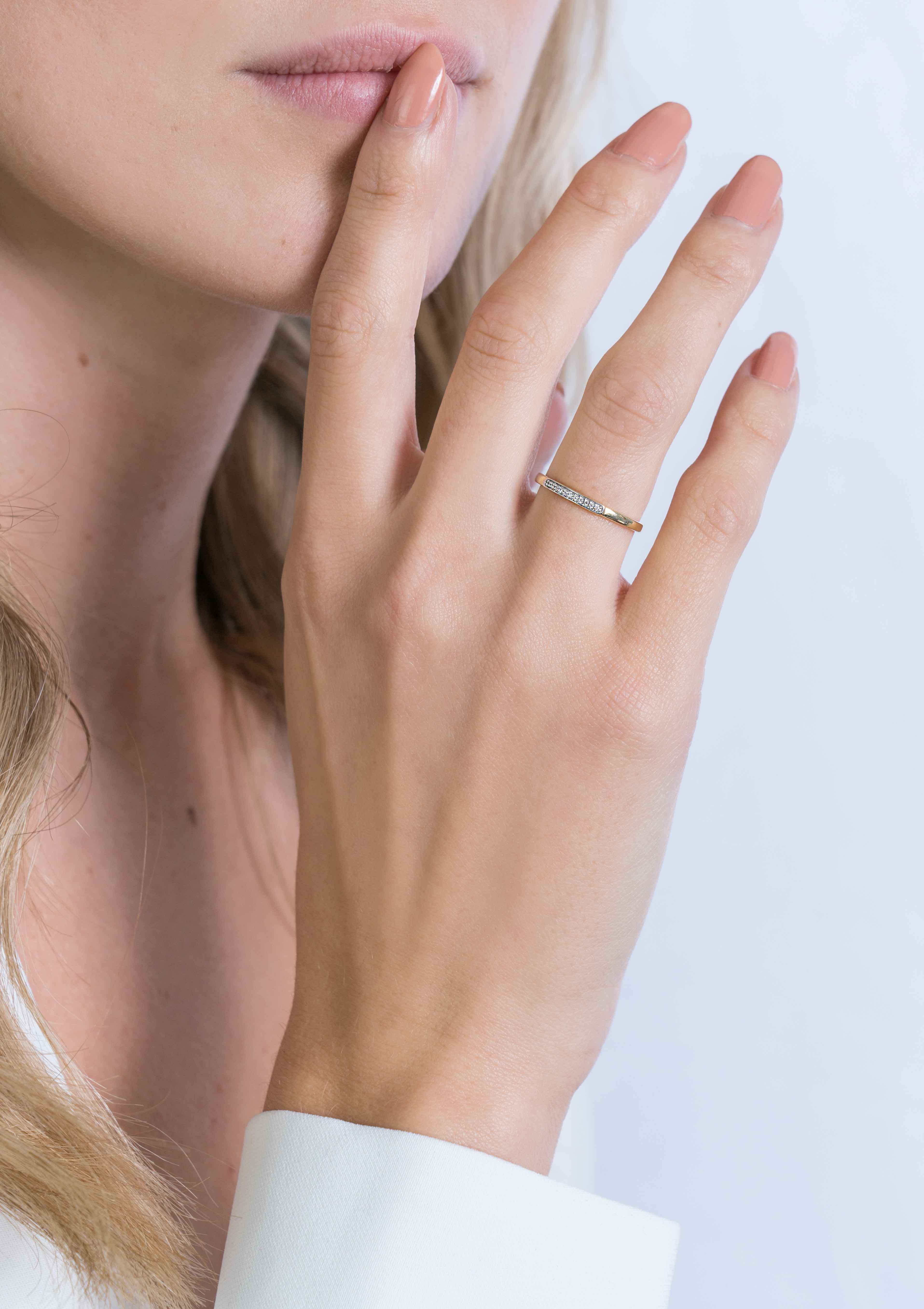 ZINZI Gold 14 karaat gouden gladde aanschuifring met bovenop een schitterende rijzetting bezet met elf witte zirconia's. Gemakkelijk te combineren met andere ZINZI Gold aanschuifringen. Vervaardigd van geheel 14 karaat goud (585).