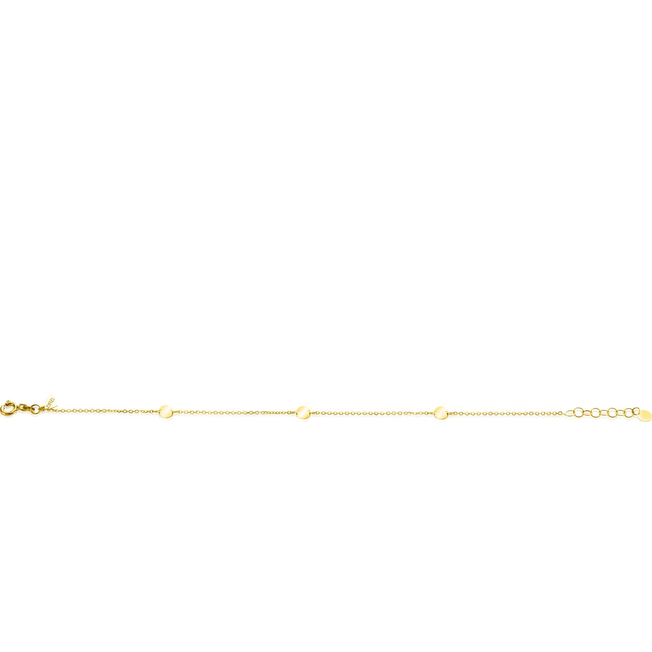 ZINZI Gold 14 krt gouden armband met subtiele jasseron schakels en drie ronde gladde plaatjes (5mm). De lengte van de armband is te variëren tussen 18 en 20cm. Valt sierlijk om iedere pols. Met herkenbaar 'Zinzi' door het kleine gouden Zinzi hartje bij de sluiting. Vervaardigd van geheel 14 karaat goud (585).