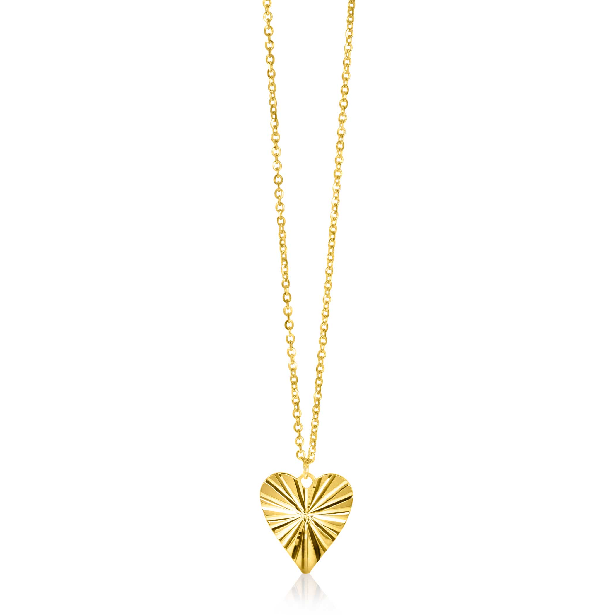 ZINZI Gold 14 karaat gouden ketting 45cm met bewerkt gouden hart 15mm. Vervaardigd van geheel 14 karaat goud (585). En herkenbaar 'Zinzi' door het kleine gouden Zinzi hartje bij de sluiting.