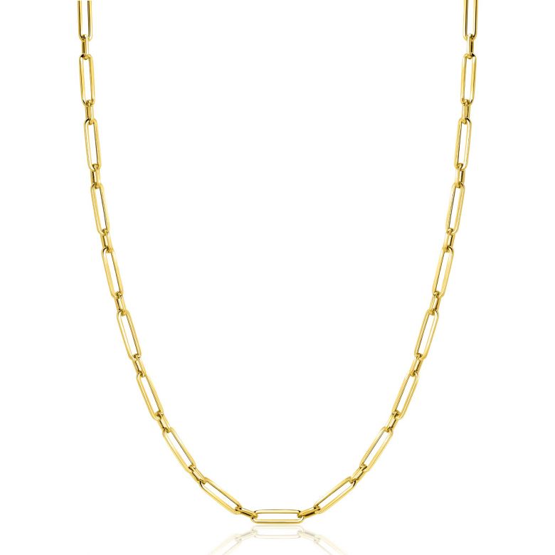 ZINZI Gold 14 krt gouden closed for ever schakelketting met tussenoog. De breedte van de ketting is 3mm. De kleinere ovale schakels zijn 5,4mm lang en de lange schakels hebben een lengte van 11,5mm. De lengte van de ketting is 45cm. Een sierlijke ketting die ook goed te combineren is met andere gouden kettingen. Met herkenbaar 'Zinzi' door het kleine gouden Zinzi hartje bij de sluiting. Vervaardigd van geheel 14 karaat goud (585).