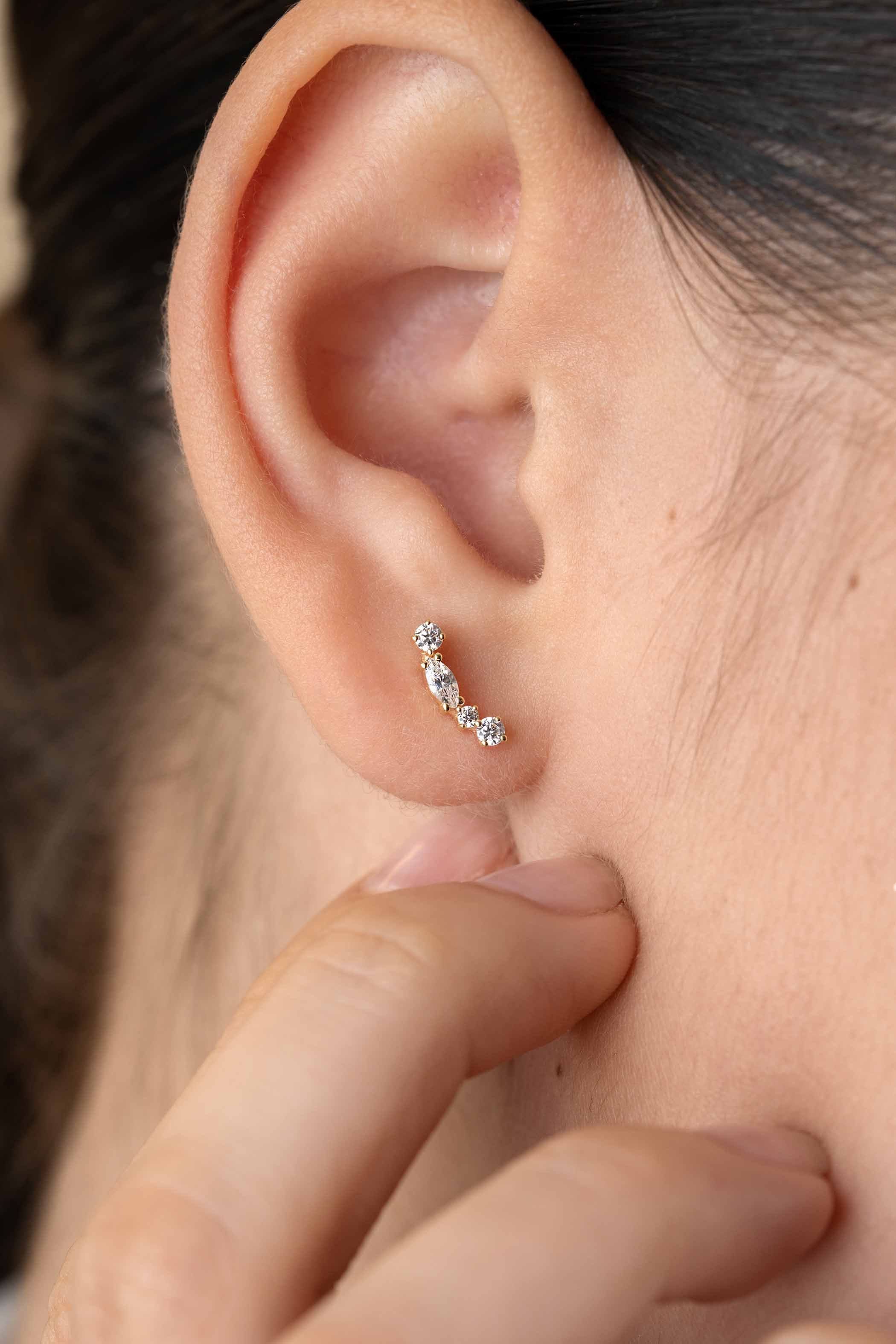 ZINZI Gold 14 krt gouden oorstekers, waarbij een peervormige en vierkante witte zirconia's sierlijk onder elkaar zijn gezet. Een mooie glinstering op het oor! Vervaardigd van geheel 14 karaat goud (585).