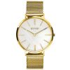 Het nieuwe ZINZI Retro horloge is klassiek, trendy en tijdloos tegelijk. Geïnspireerd op de 'seventies', maar met de bekende ZINZI touch ontworpen. Het extra dunne Japanse uurwerk met datum en de platte ronde stalen geelgoudkleurige kast (38mm) zorgen voor een elegante maar fashionable look. Voorzien van een witte parelmoer wijzerplaat en geelgoudkleurige stalen mesh band. De band is eenvoudig te verwisselen door het handige schuifsysteem aan de achterkant. Leuk detail: de felroze 'ZINZI' seconde wijzer.