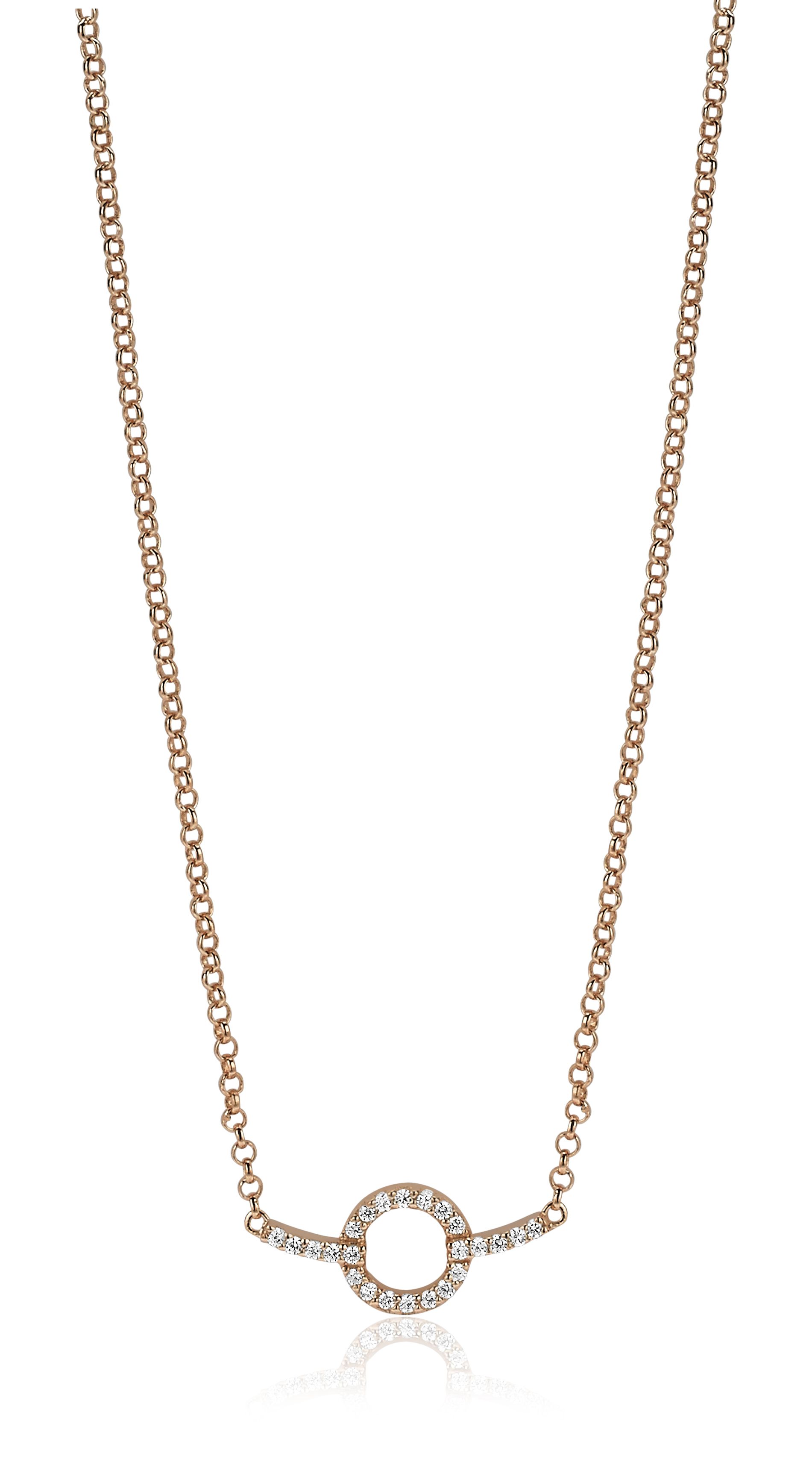 ZINZI zilveren collier rosé verguld met strak rond design, vol gezet met witte zirconia's. De lengte van het collier is 42-45cm en wordt kort op de hals gedragen. Bij sluiting herkenbaar ZINZI, door het zilveren ZINZI hartje.
