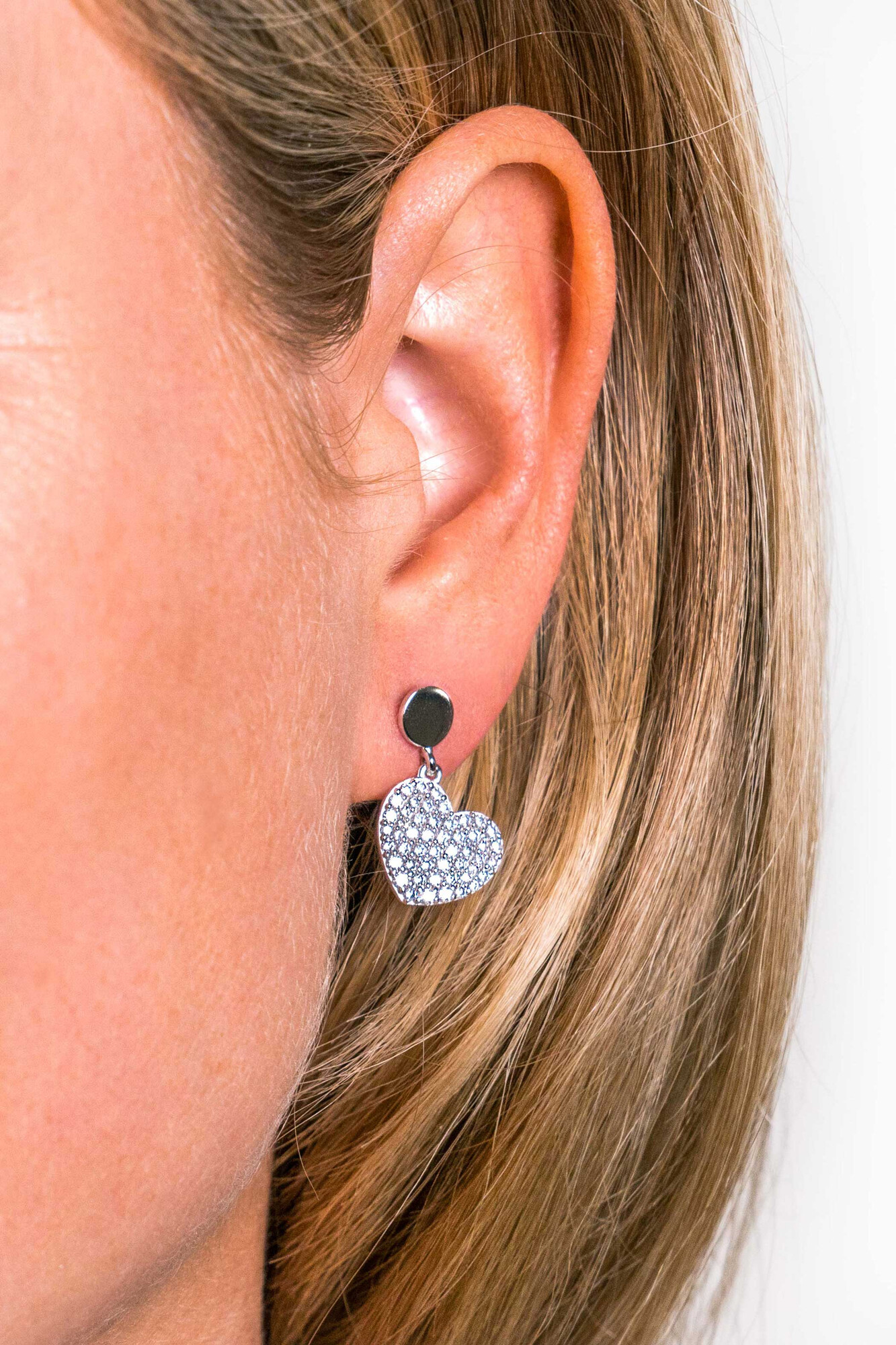 ZINZI zilveren oorsieraden met bungelende harten, vol bezet met witte zirconia's. Bovenaan zijn de oorknoppen voorzien van glanzende rondjes. Echte eyecatchers in de oren. De oorsieraden zijn vervaardigd van eerste gehalte zilver (925) en voorzien van een extra rodiumlaag voor een langdurige glans.