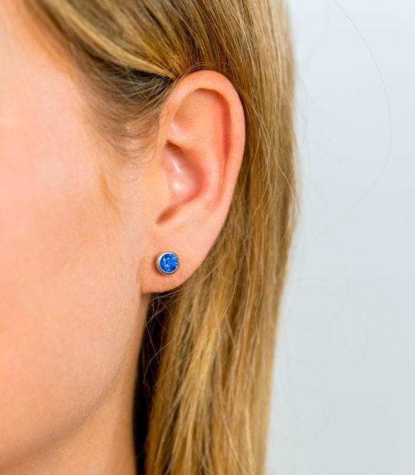 ZINZI zilveren oorknoppen (6,5mm) met ronde donkerblauwe kleurstenen. Vervaardigd van eerste gehalte zilver (925) en met extra rodiumlaag voor een langdurige glans.