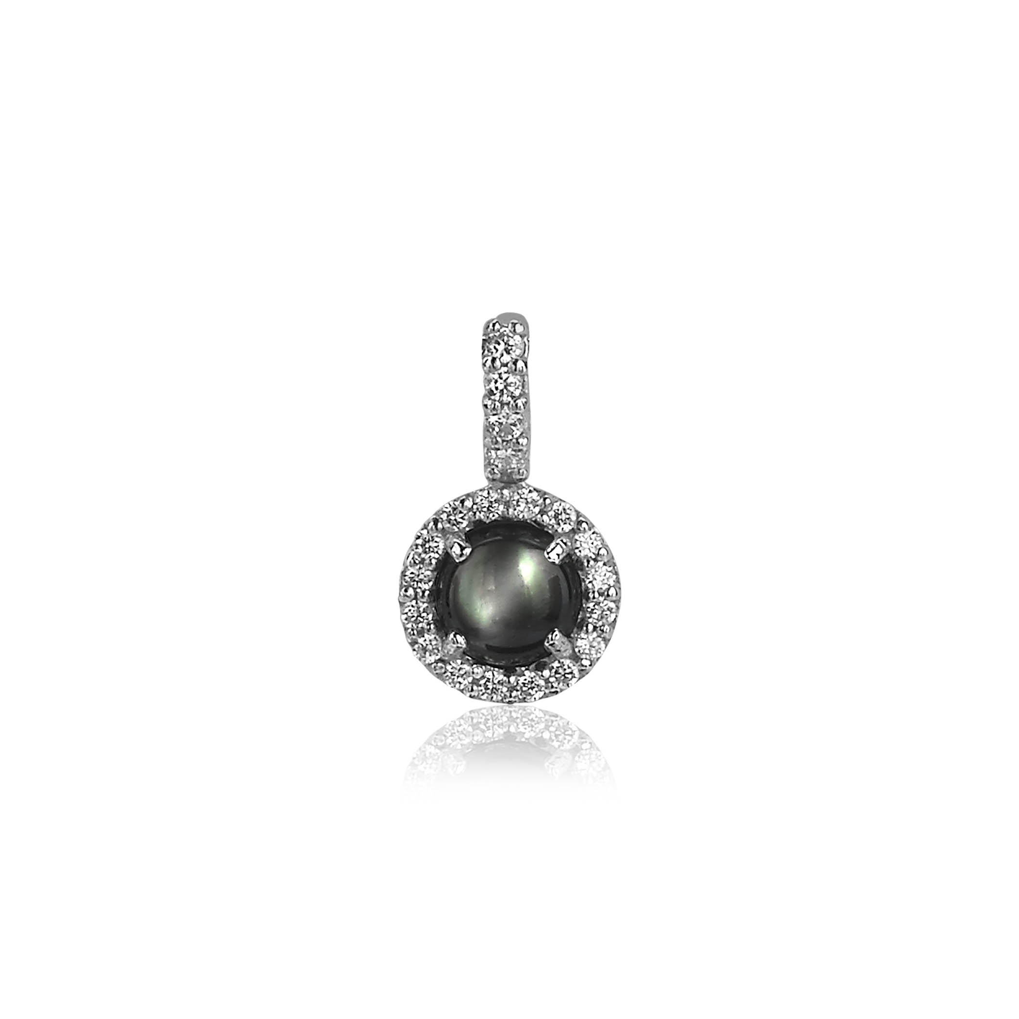 ZINZI zilveren hanger met donker grijs parelmoer en omringd met een schitterende zetting van witte zirconia's. De hanger is exclusief collier geprijsd.