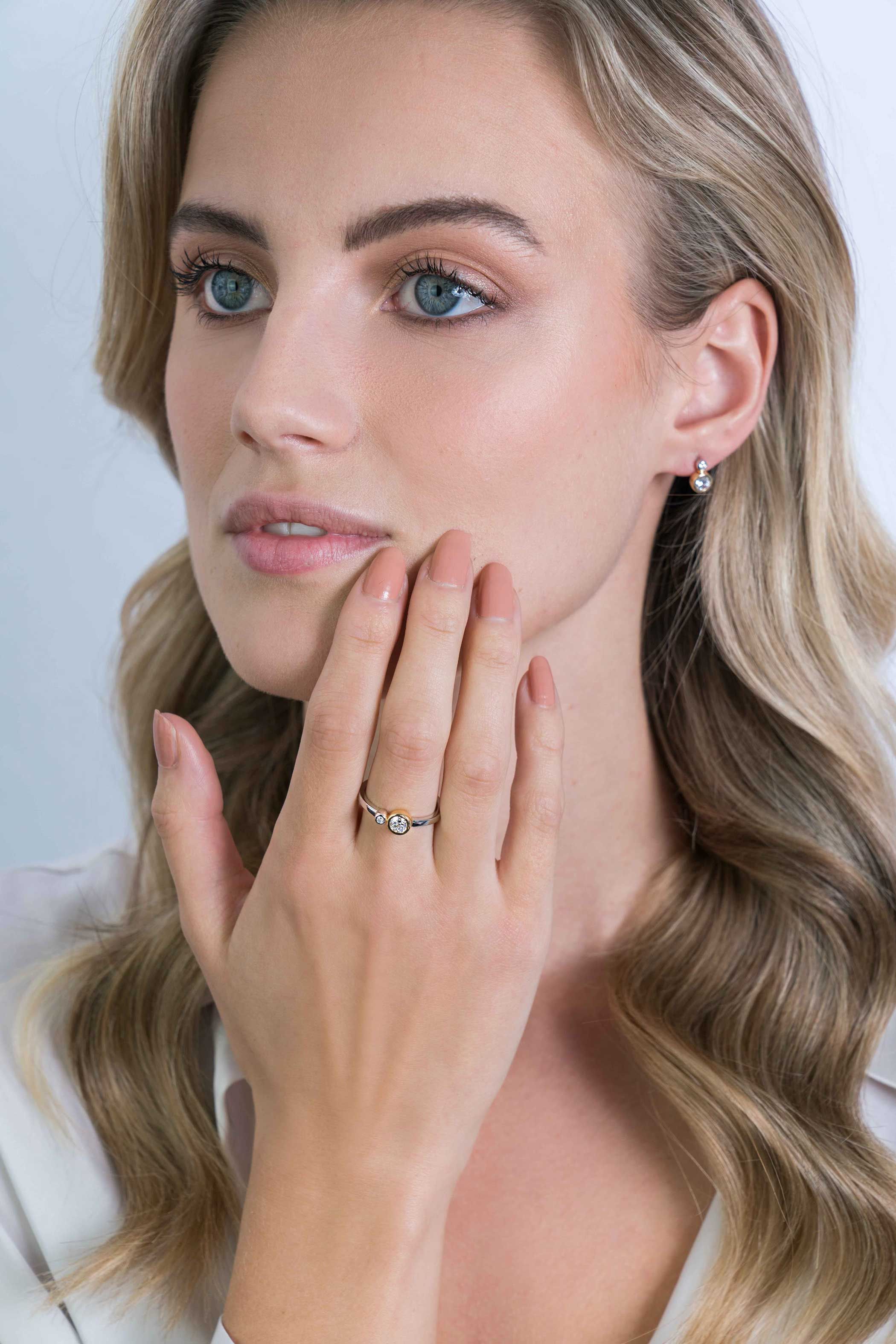 ZINZI zilveren ring met een kleine ronde zetting en een grotere ronde 14K geelvergulde zetting, bezet met een grote witte zirconia. Gemakkelijk te combineren met andere zilveren Zinzi ringen. De ring is vervaardigd van eerste gehalte zilver (925) en extra 14K geelverguld.