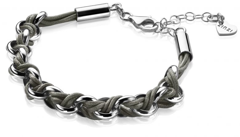ZINZI armband met zilveren jasseron schakels, verweven met grijs cottonkoord. Prachtig te combineren met andere armbanden. Dé Fashion armband van dit winterseizoen.