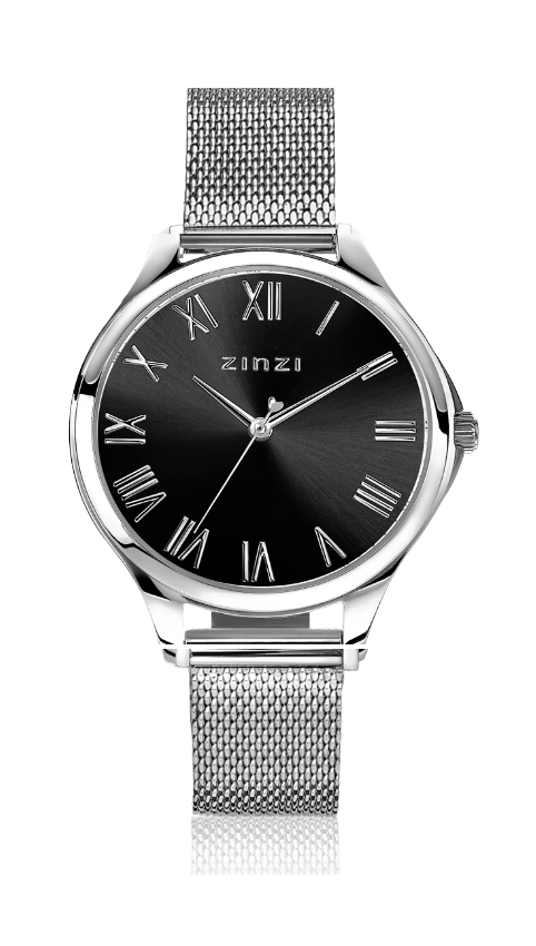 De JULIA watch is het nieuwste stijlvolle dameshorloge van Zinzi. Voorzien van een zwarte 'sunray' wijzerplaat 34mm, met stijlvolle zilverkleurige romeinse cijfers en zilverkleurige stalen mesh band. Natuurlijk met de bekende Zinzi touch ontworpen: het extra dunne Japanse uurwerk en de ronde stalen zilvergekleurde kast (34mm) zorgen voor een fashionable look. Leuk detail: de seconde wijzer met een subtiel hartje. Ook 5atm waterbestendig (tegen regen en spatwater) en met sterk mineraal glas. Kwaliteit staat bij Zinzi voorop.