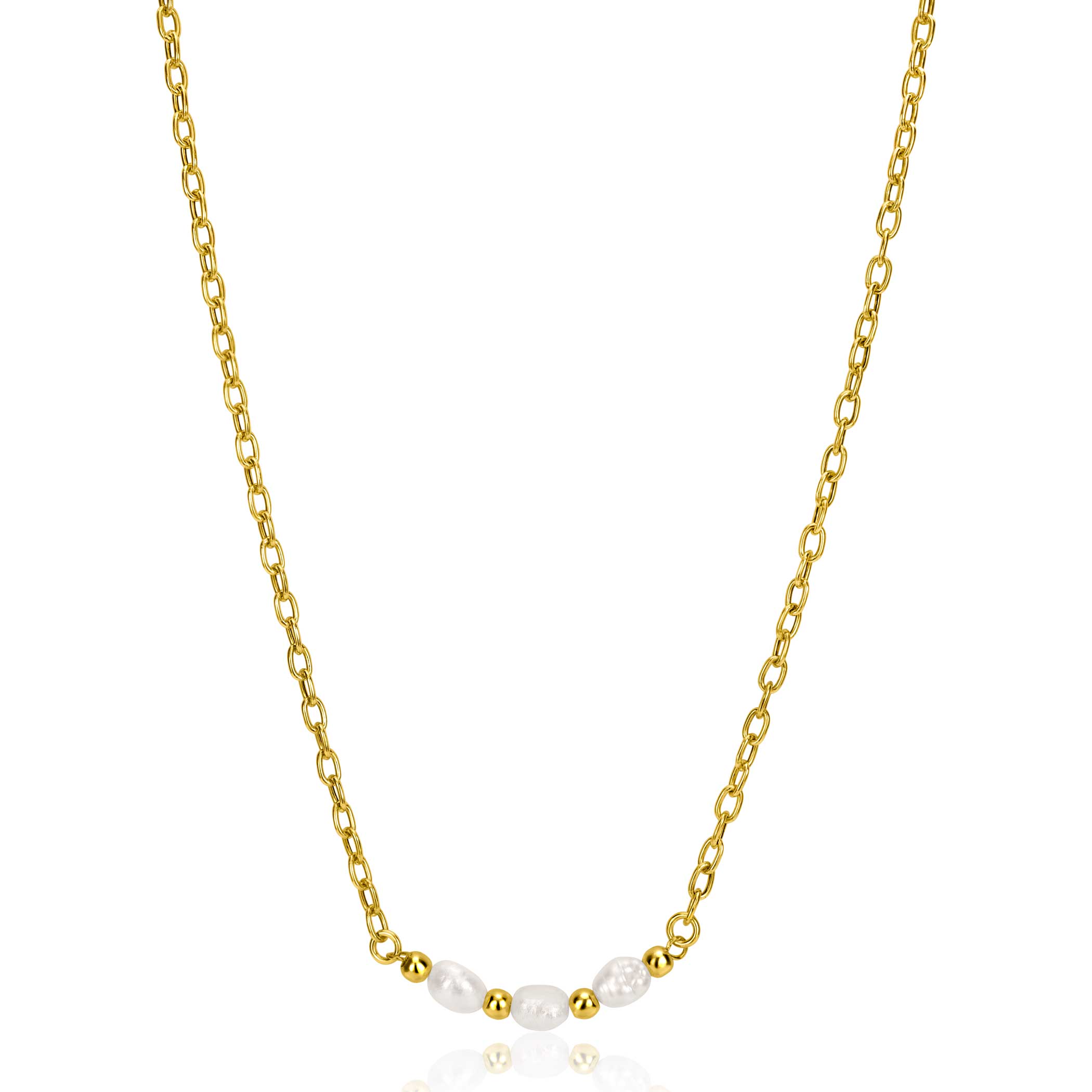 ZINZI vergoldete Silberkette mit drei natürlich geformten weißen Süßwasserperlen in der Mitte 42-45cm ZIC2643