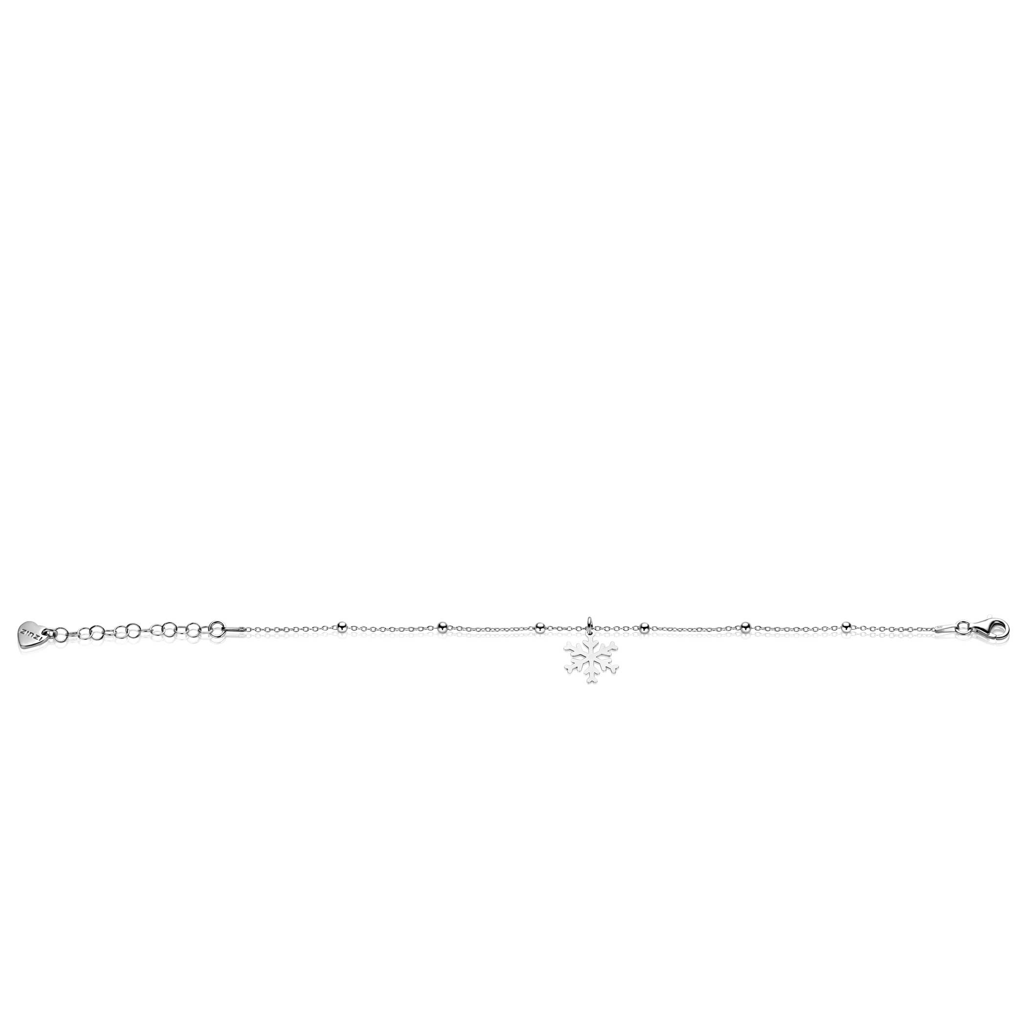 ZINZI zilveren bolletjes armband met sneeuwvlok hanger. De lengte is verstelbaar van 17cm tot 20cm. Vervaardigd van eerste gehalte zilver (925) en voorzien van een extra rodiumlaag voor langdurige glans.