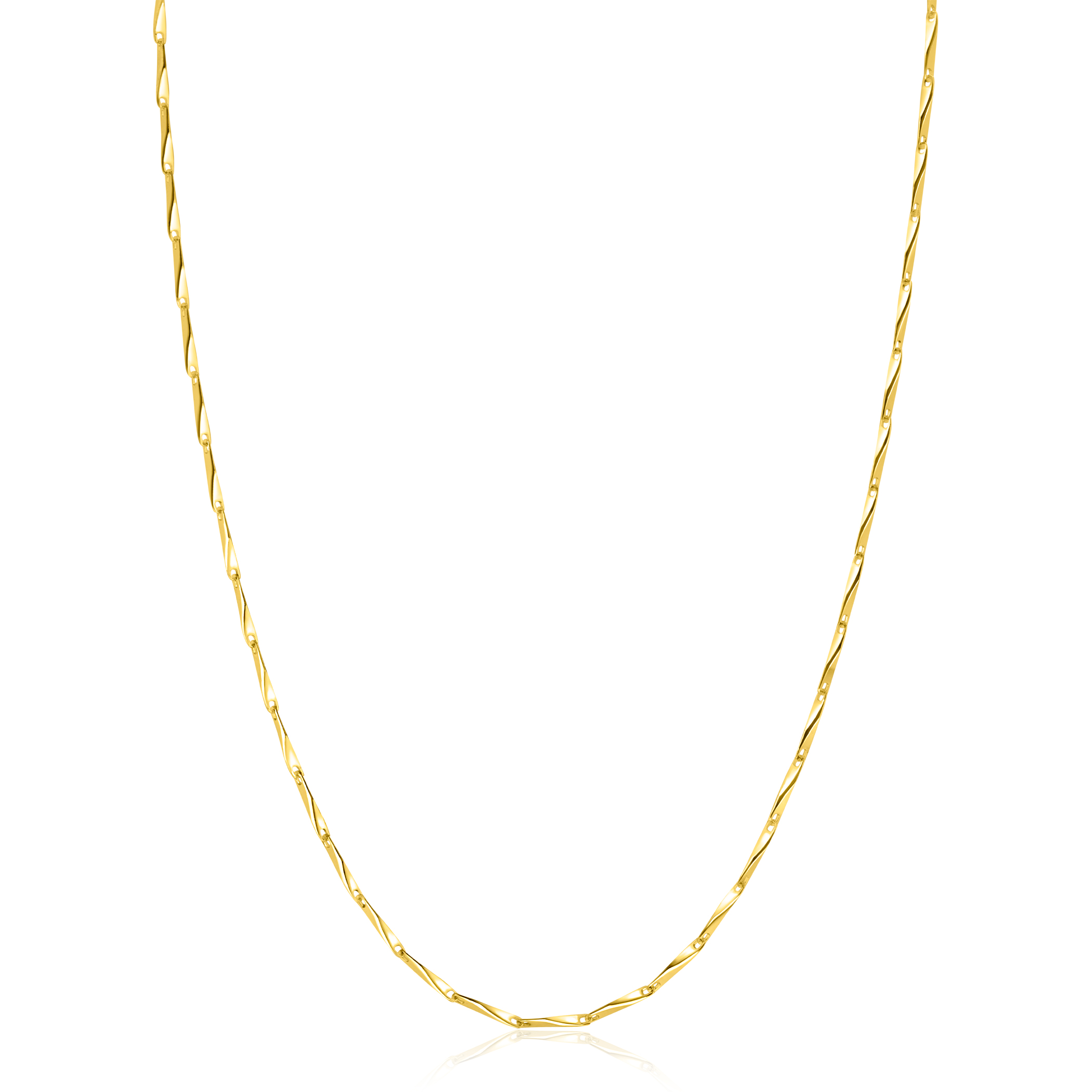ZINZI gold plated zilveren trendy schakel ketting met glinsterende pijlvormige schakels. De schakels zijn 1,5mm breed. De lengte van de ketting is te variëren tussen 42 cm en 45cm. De ketting is vervaardigd van eerste gehalte zilver (925) en extra geelverguld.