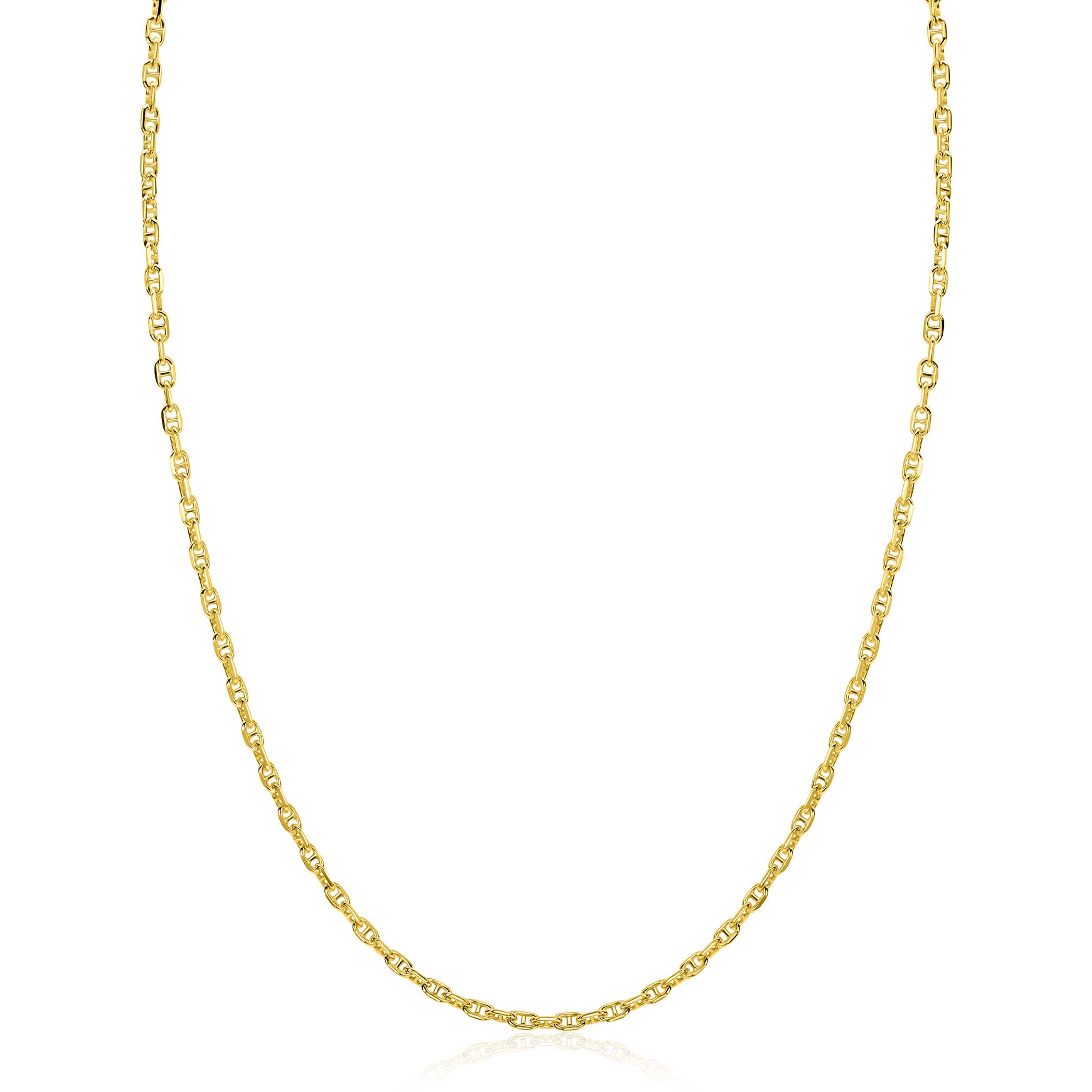 ZINZI gold plated zilveren marine schakel ketting. De schakels zijn 2,3mm breed. De lengte van de ketting is te variëren tussen 42 en 45cm. De ketting is vervaardigd van eerste gehalte zilver (925) en extra geel verguld.
