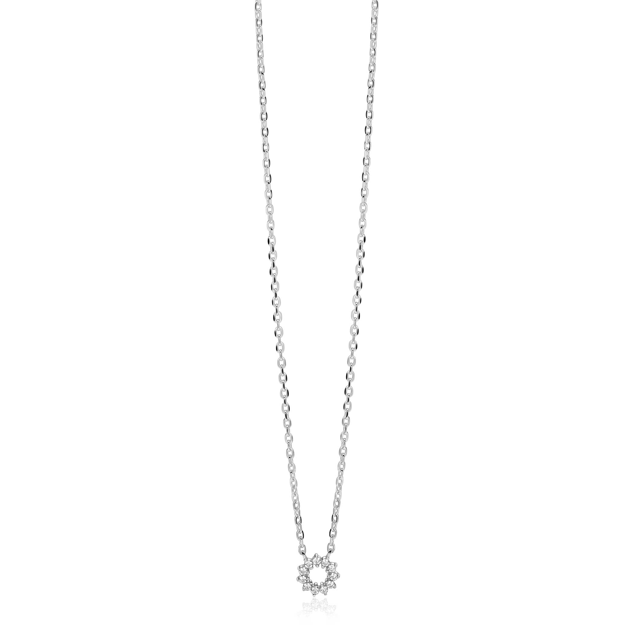 ZINZI zilveren ketting met ronde hanger (8mm) bezet met witte zirkonia’s in verfijnde chatonzetting. De ronde hanger heeft de uitstraling van de zon. De lengte van de ketting is te variëren tussen 42 en 45cm. De ketting is vervaardigd van eerste gehalte zilver (925) en voorzien van een extra rodiumlaag voor een langdurige glans.