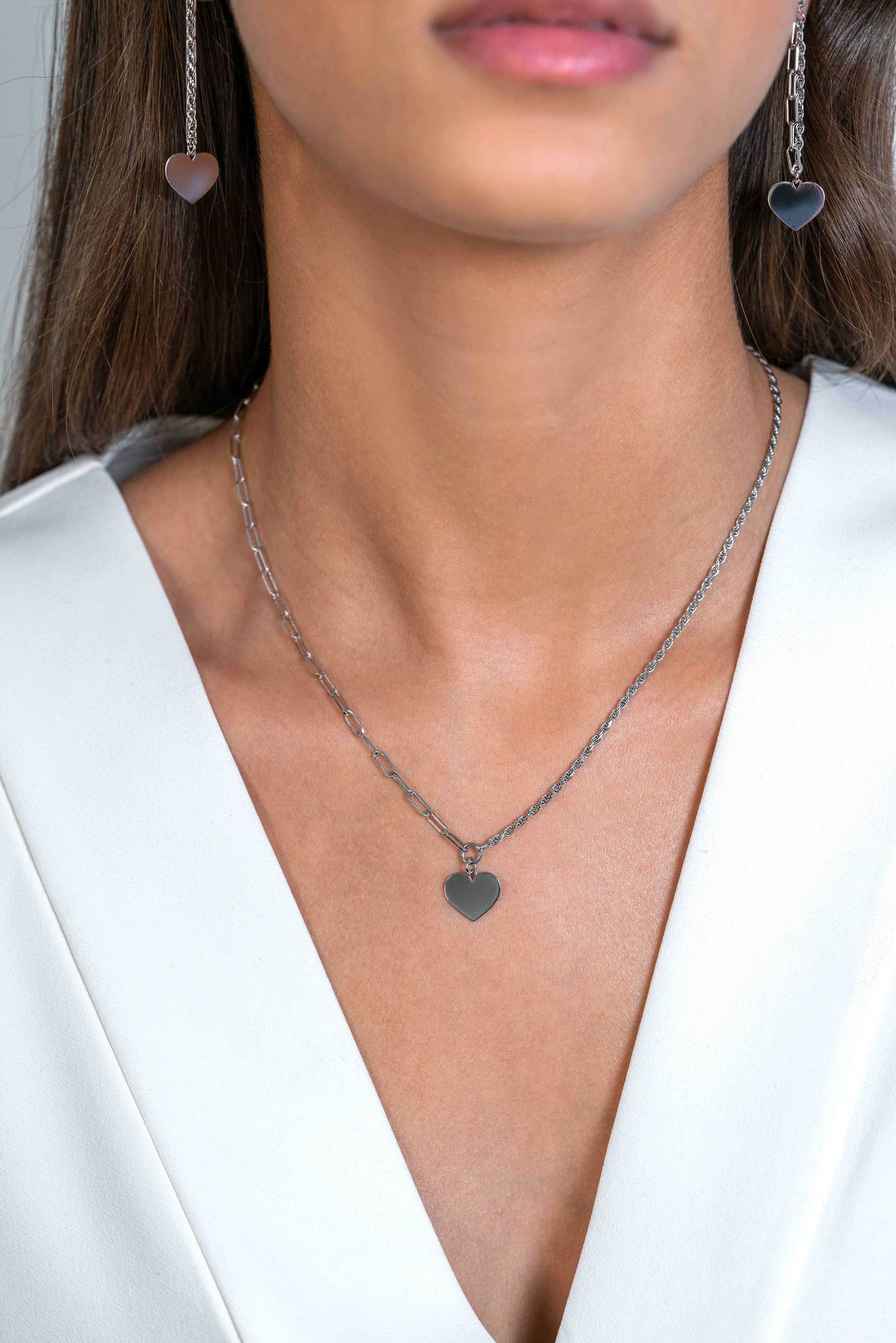 ZINZI zilveren schakelketting 45cm met twee trendy schakels gecombineerd (paperclip- en koordschakels) en in het midden een glanzend hart (12mm). De lengte van de ketting is te variëren tussen 40 en 45cm. Met herkenbaar Zinzi hartje bij de sluiting. Vervaardigd van eerste gehalte zilver (925) en met extra rodiumlaag.