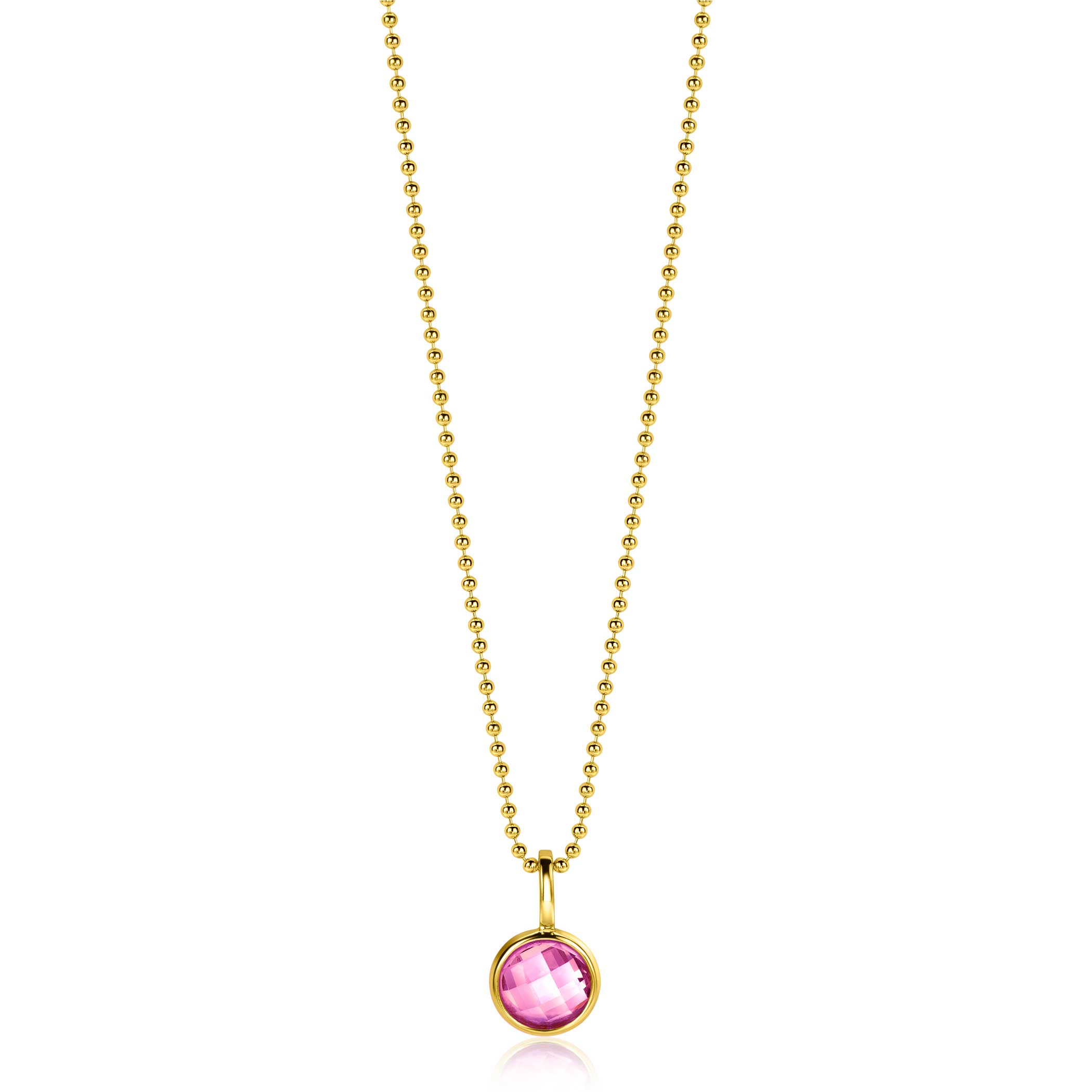BIRTHSTONE hanger 8mm gold plated OKTOBER, staat symbool voor iemand die in de maand oktober is geboren. In oktober is de geboortesteen 'roze rozenkwarts zirconia'. Iedere geboortesteen heeft haar eigen betekenis. De hanger is vervaardigd van eerste gehalte zilver (925) en voorzien van een extra 14K geel vergulding.