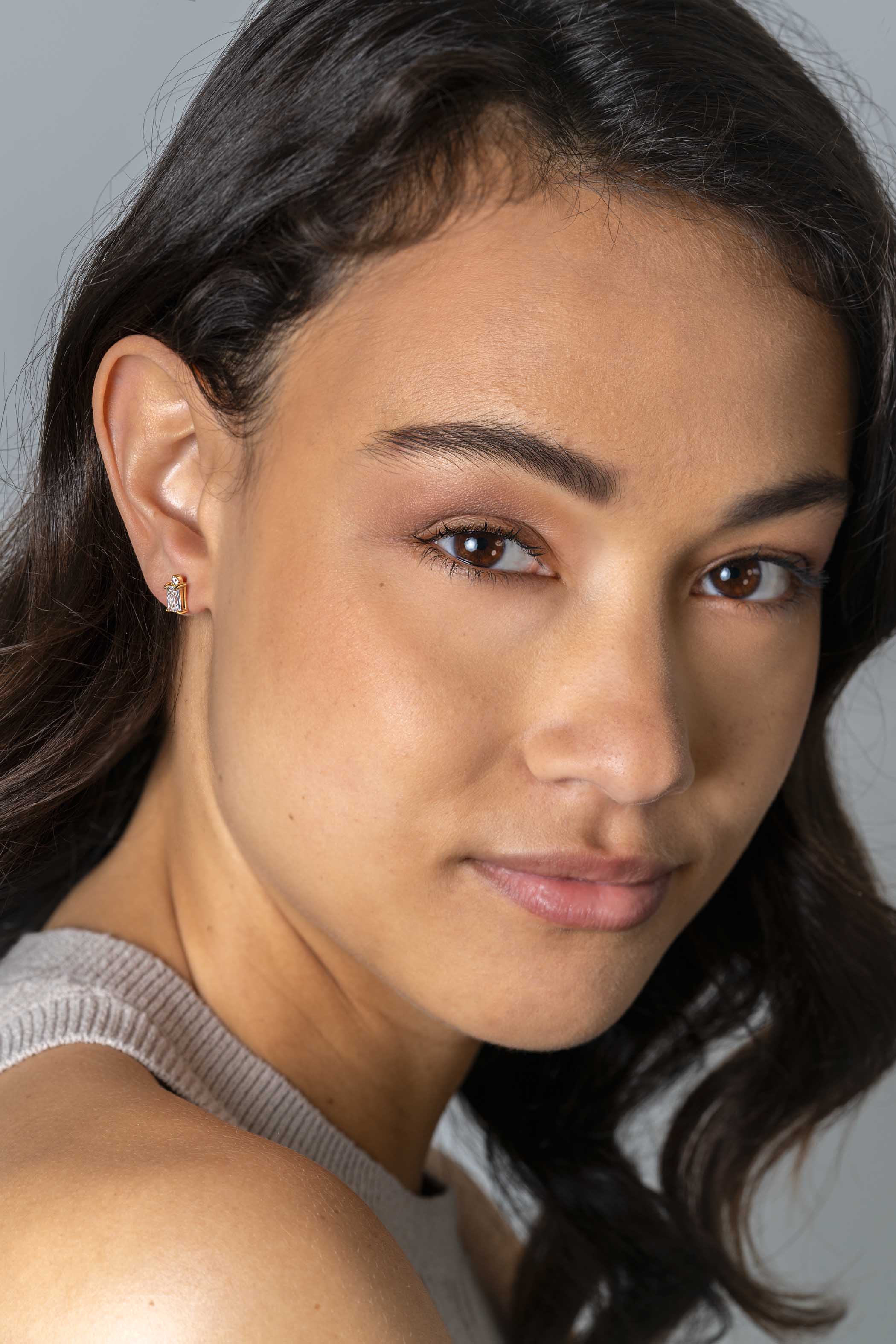 ZINZI gold plated zilveren oorstekers (9mm), bezet met baguette geslepen rechthoekige witte zirconia en daarboven kleine ronde witte zirconia. Vervaardigd van eerste gehalte zilver (925) en extra geelverguld.