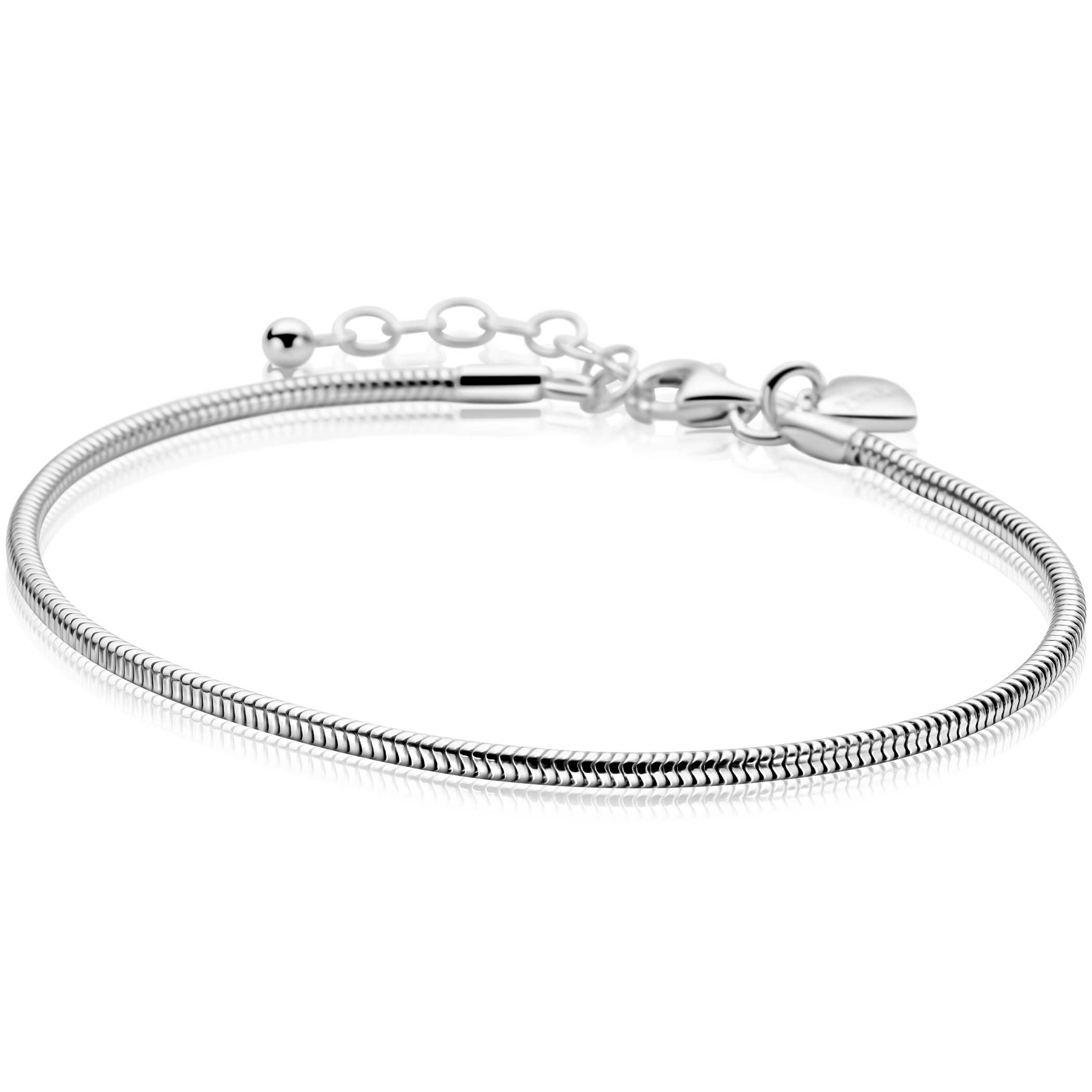 ZINZI zilveren ronde slangen armband. De schakels zijn 2mm breed. De lengte van de armband is te variëren tussen 17 en 21cm. De armband is vervaardigd van eerste gehalte zilver (925) en voorzien van een extra rodiumlaag voor een langdurige glans.