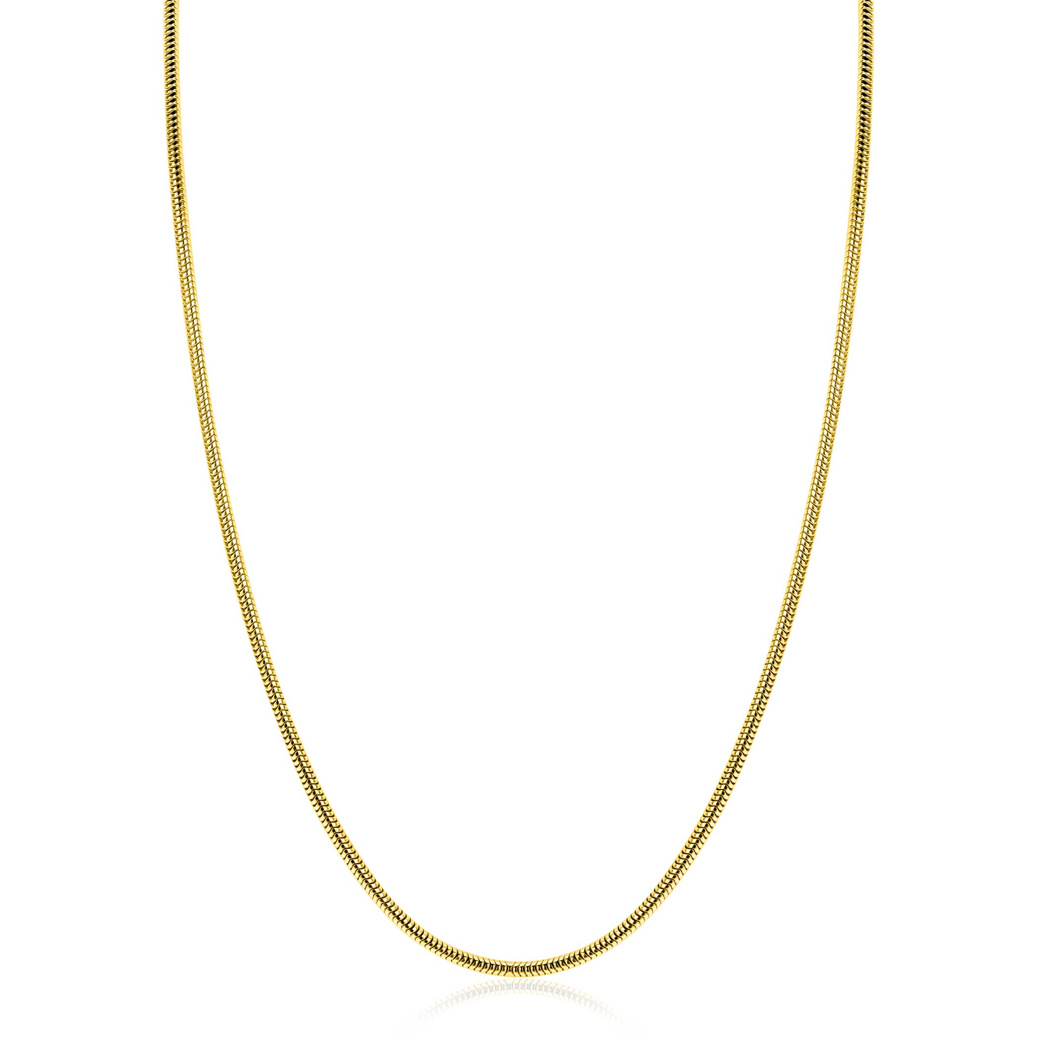 ZINZI gold plated zilveren ronde slangen ketting. De schakels zijn 2mm breed. De lengte van de ketting is te variëren tussen 42 en 45cm. De ketting is vervaardigd van eerste gehalte zilver (925) en extra geel verguld.